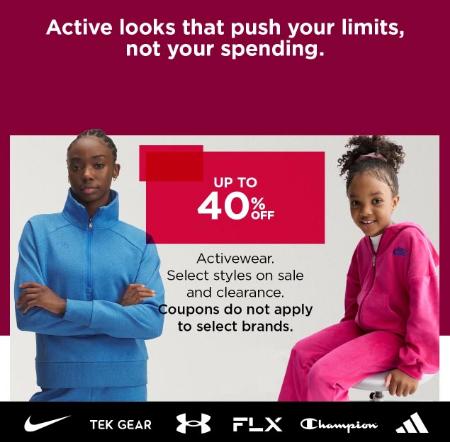 Hurry in and get up to 40% off activewear in store for a limited time.