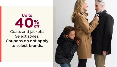 Shop in store and take up to 40% off on coats and jackets for a limited time.