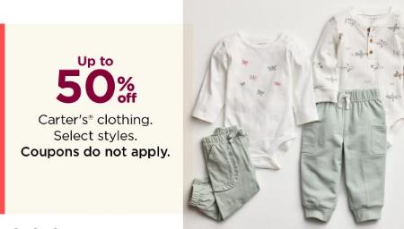 Stop by and take up to 50% off on Carter's clothing in store.