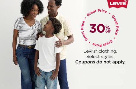 Stop by and take 30% off on Levi's clothing in store for a limited time.