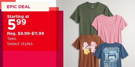 Hurry in and get tees starting at $5.99 in store for a limited time.