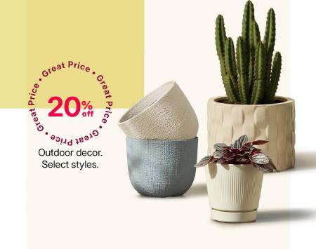 Hurry in and take 20% off on outdoor decor in store for a limited time.